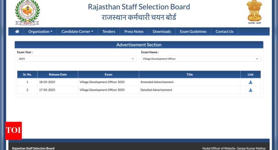The Rajasthan Staff Selection Board (RSSB) has released an official notification for the recruitment of 850 Village Development Officer (VDO) posts. Candidates interested in applying for the Rajasthan VDO Bharti 2025 can now submit their applications online via the official RSSB website. The application process started on June 19, 2025, and will remain open until July 18, 2025.Applicants are advised to go through the complete notification to understand the eligibility criteria, application process, selection method, and salary structure. All essential details, including the online registration link, are available on the recruitment portal.