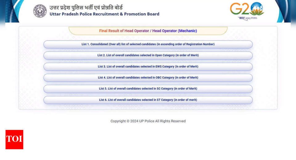 UP Police Head Operator result 2025: The Uttar Pradesh Police Recruitment and Promotion Board (UPPRPB) has officially declared the final selection result for the Direct Recruitment-2022 of Head Operator / Head Operator (Mechanical) posts under the UP Police Radio Cadre. A total of 936 candidates have been selected for appointment based on a multi-stage recruitment process.As per the announcement made on the Board’s website https://uppbpb.gov.in, the final selection has been carried out in strict adherence to the reservation policies and procedural guidelines established by the Government of Uttar Pradesh. The selection result is now available for candidates to download by entering their registration number and date of birth.Recruitment received over 76,000 applicationsThe recruitment drive was initiated via Notification No. PRPB One-3 (34)/2020, dated January 6, 2022, for filling 936 posts. A total of 76,516 online applications were received. The online written examination was conducted across 11 districts in three shifts on January 30 and January 31, 2024. Due to the multi-shift format, the Board implemented normalisation of scores, as mentioned in the notification and relevant service rules.Following this, 9,807 candidates—approximately ten times the number of advertised vacancies—were called for document scrutiny and physical standard tests, which were held from March 24 to March 30, 2025. The physical efficiency test, designed to be egoistic in nature, took place between May 20 and May 28, 2025.Final selection based on normalised merit and reservation policyThe final list has been prepared on the basis of candidates’ merit after normalisation of written exam scores, performance in physical tests, and document verification. In total, 936 candidates have been selected, including 482 from the Other Backward Class (OBC) category, 211 from the Scheduled Caste (SC) category, and 18 from the Scheduled Tribe (ST) category. Additionally, 186 female candidates have been declared successful.IIT Kanpur verified written exam dataTo maintain transparency, the data from the online written exam was sent to IIT Kanpur for thorough validation. The Board also provided clarification opportunities to candidates, taking appropriate action wherever necessary, based on CRL and supporting data.Final cut-off marks for all categoriesBelow is the final category-wise cut-off for the selected candidates:
